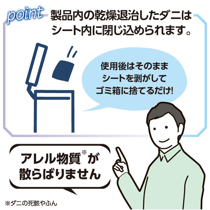 シートごとそのまま捨てるので、集めたダニが散らばらず、安全に処理ができます。